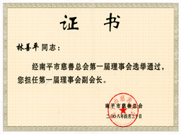 公司董事長當選為南平市慈善總會副會長 公司向南平市慈善總會捐資三十萬元