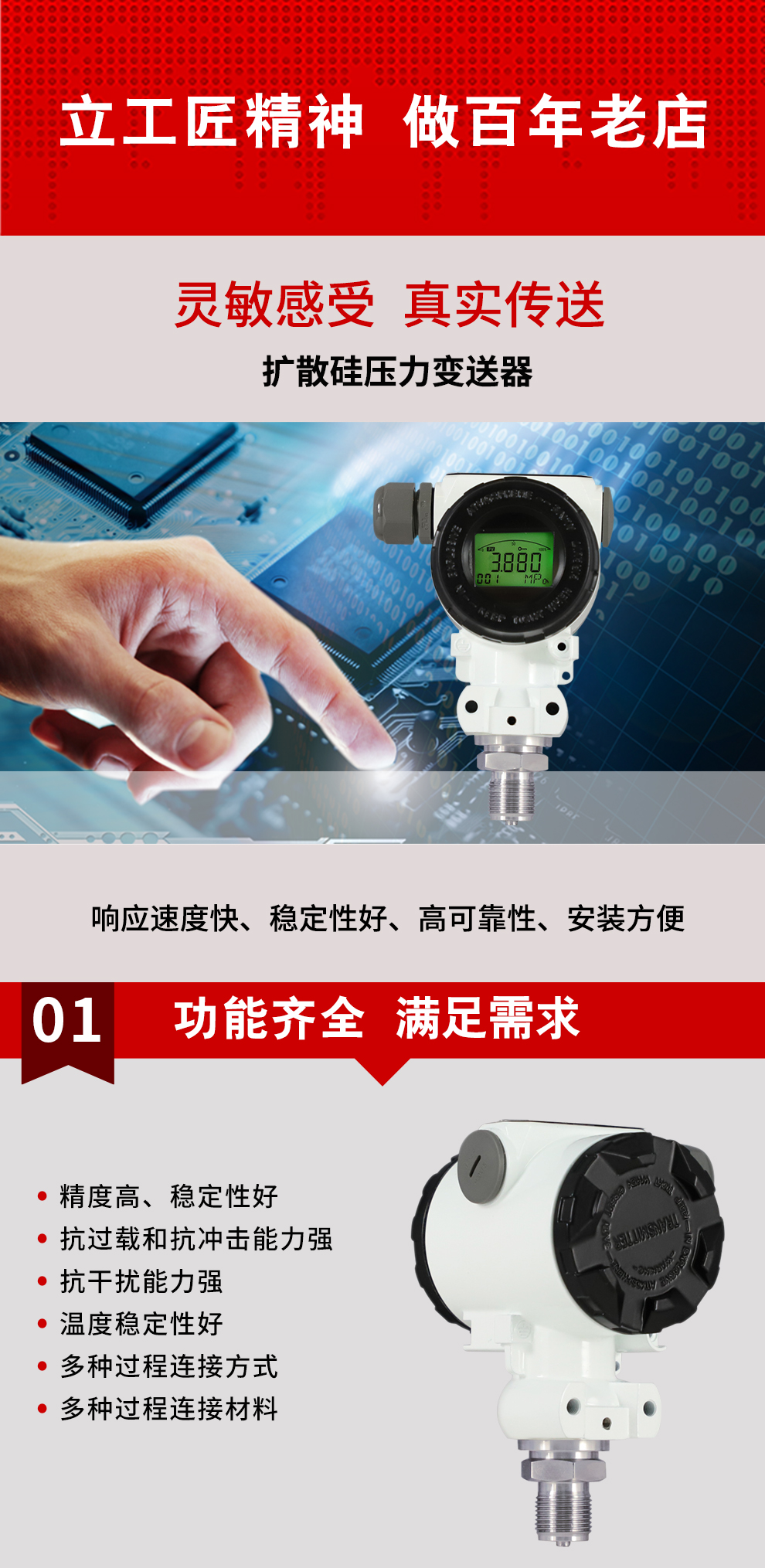 K系列壓力變送器采用具有國(guó)際先進(jìn)水平的擴(kuò)散硅傳感器,配合高精度電子元件,經(jīng)嚴(yán)格的工藝過程裝配而成。充分發(fā)揮了傳感器的技術(shù)優(yōu)勢(shì),使該系列壓力變送器具有優(yōu)異的技術(shù)性能。該變送器抗過載和抗沖擊能力強(qiáng)、溫度漂移小、穩(wěn)定性高,具有很高的測(cè)量精度。