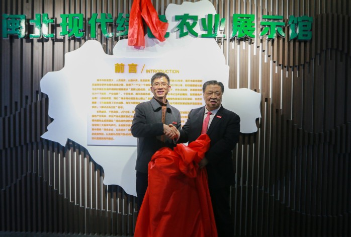 校董事長傅光明為“閩北現(xiàn)代綠色農(nóng)業(yè)展示館”揭牌
