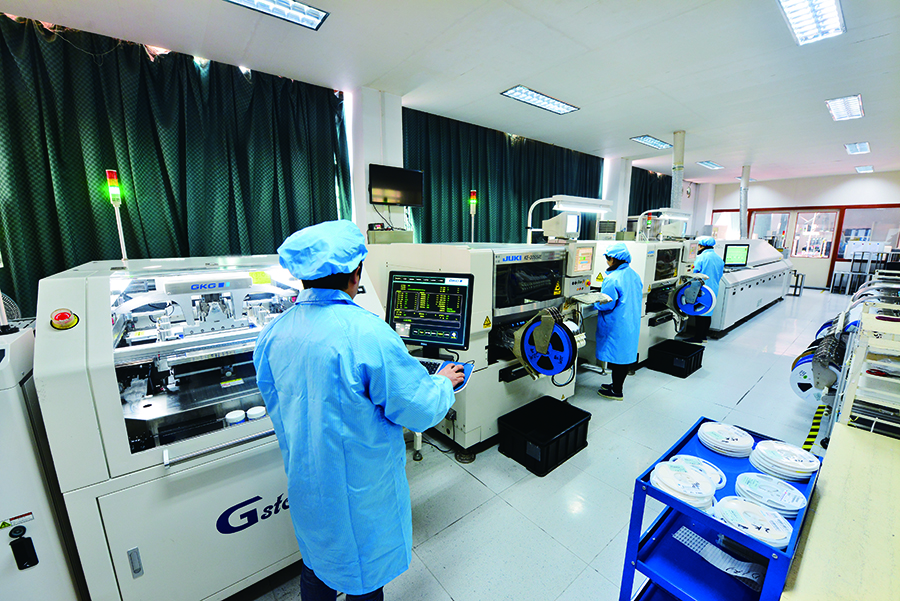 2020年的流金八月,驕陽似火,虹潤公司智能儀表生產(chǎn)線改造擴(kuò)建項目施工現(xiàn)場,施工人員正忙著安裝各類基建設(shè)備。與此同時,相距不到百米的公司智能制造工廠內(nèi),自動點焊機(jī)器人在不停地運轉(zhuǎn),一片片電路板在全自動貼片機(jī)上不斷地向前傳送……生產(chǎn)車間內(nèi)亦是一片繁忙景象。